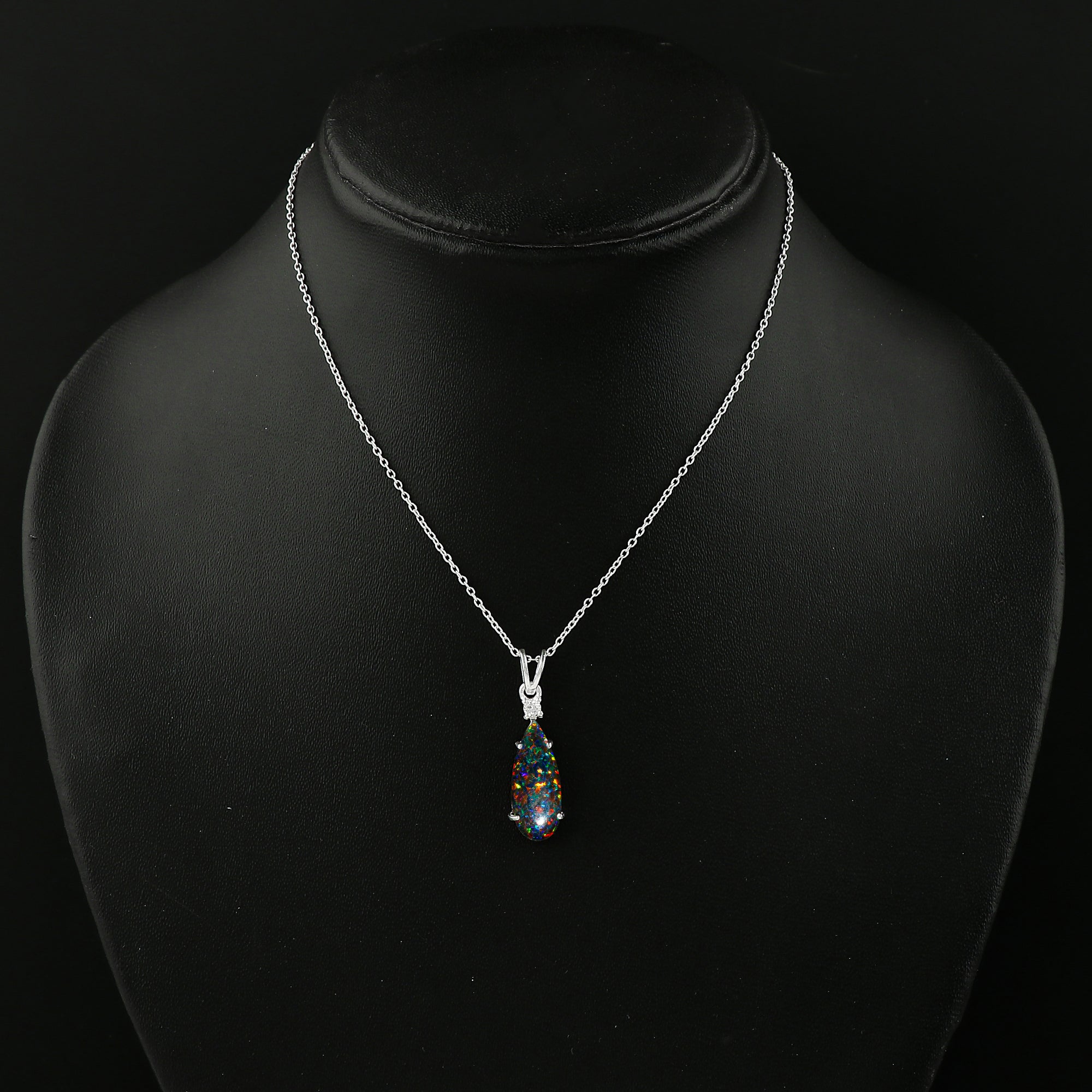 Crafted from 925 sterling silver, this 20.8 x 8 mm dot opal pendant is a stunning and unique piece. This solitaire pear-shaped opal pendant features a magnificent display of vibrant colors and a unique and rare rolling flash pattern. Add a touch of sparkle to your outfit with this classic yet elegant solitaire opal pendant. Whether it's a birthday or a wedding anniversary, this beautiful opal pendant is sure to turn heads.