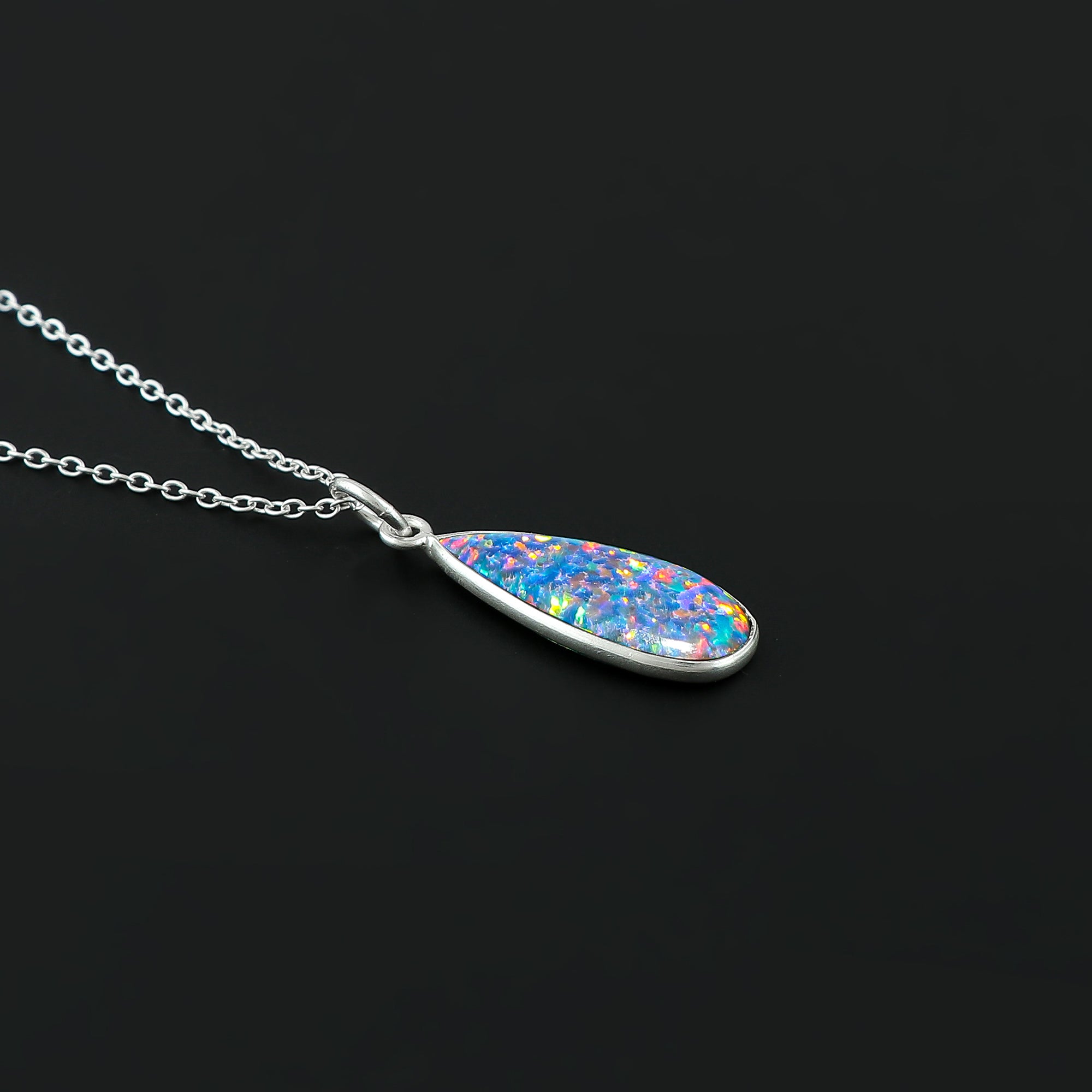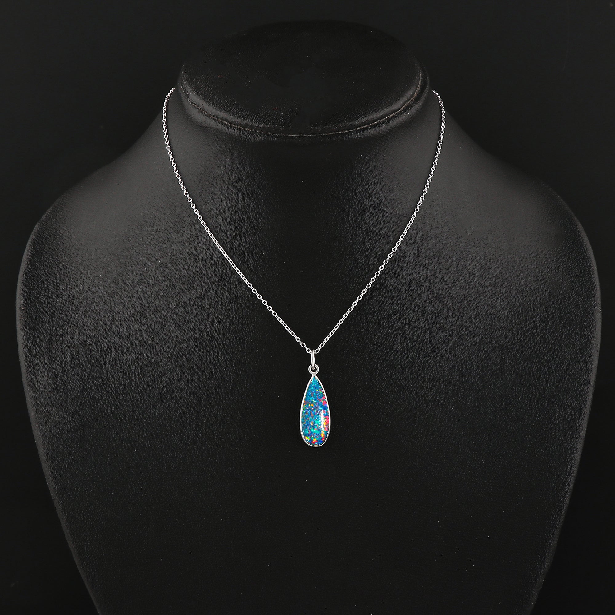 Crafted with care, this stunning 20.0x8.0 Pear Blue Dot Opal, weighing 0.49 g and 2.45 Ct., possesses an amazing quality and vibrant flashes of colors that dance and shimmer with the light. Encased in 925 sterling silver, this amazing opal gemstone pendant is a perfect piece to add some unique style to your collection.