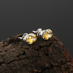 Natural Citrine Gemstone Stud Earrings for Women in Oval Shape