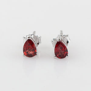Natural Garnet Gemstone Stud Earrings in Pear Shape