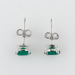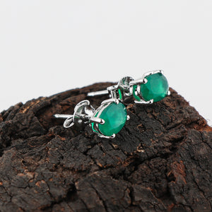Add rich green elegance to your jewelry collection with these Natural Green Onyx Crystal Stud Earrings, crafted in 925 Sterling Silver. Each earring features an oval brilliant‑cut Green Onyx gemstone (6 × 4 mm) set in a secure prong setting, showcasing its deep, verdant colour.Perfect for everyday wear or gifting, Green Onyx is celebrated for promoting emotional balance, clarity, and fresh beginnings, making it more than just jewellery — it’s a meaningful accessory.