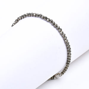 Boost your confidence and style with this Pyrite Healing Gemstone Bracelet, crafted from natural micro round beads that shine with a metallic silver glow. Often called “Fool’s Gold,” Pyrite is known for its energizing and protective qualities, helping attract positivity, willpower, and abundance. Each bead is polished to create a reflective finish that adds a bold, modern touch to any look.