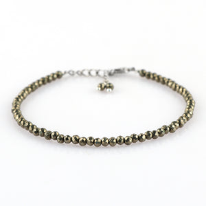 The bracelet features a silver-plated adjustable 7 + 1 inch chain, offering comfort and durability for everyday wear. Whether you're drawn to Pyrite for its grounding energy, its striking metallic color, or its symbolic connection to strength and success, this gemstone bracelet is a meaningful addition to your jewelry collection. Ideal for daily motivation, gifting, or pairing with your favorite stack.