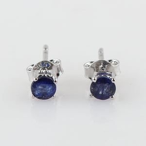 Natural Sapphire Round Stud Earrings | 4x4mm Brilliant Cut | 925 Sterling Silver | AA+ Quality | Perfect Gift for Women | Fine Jewelry
