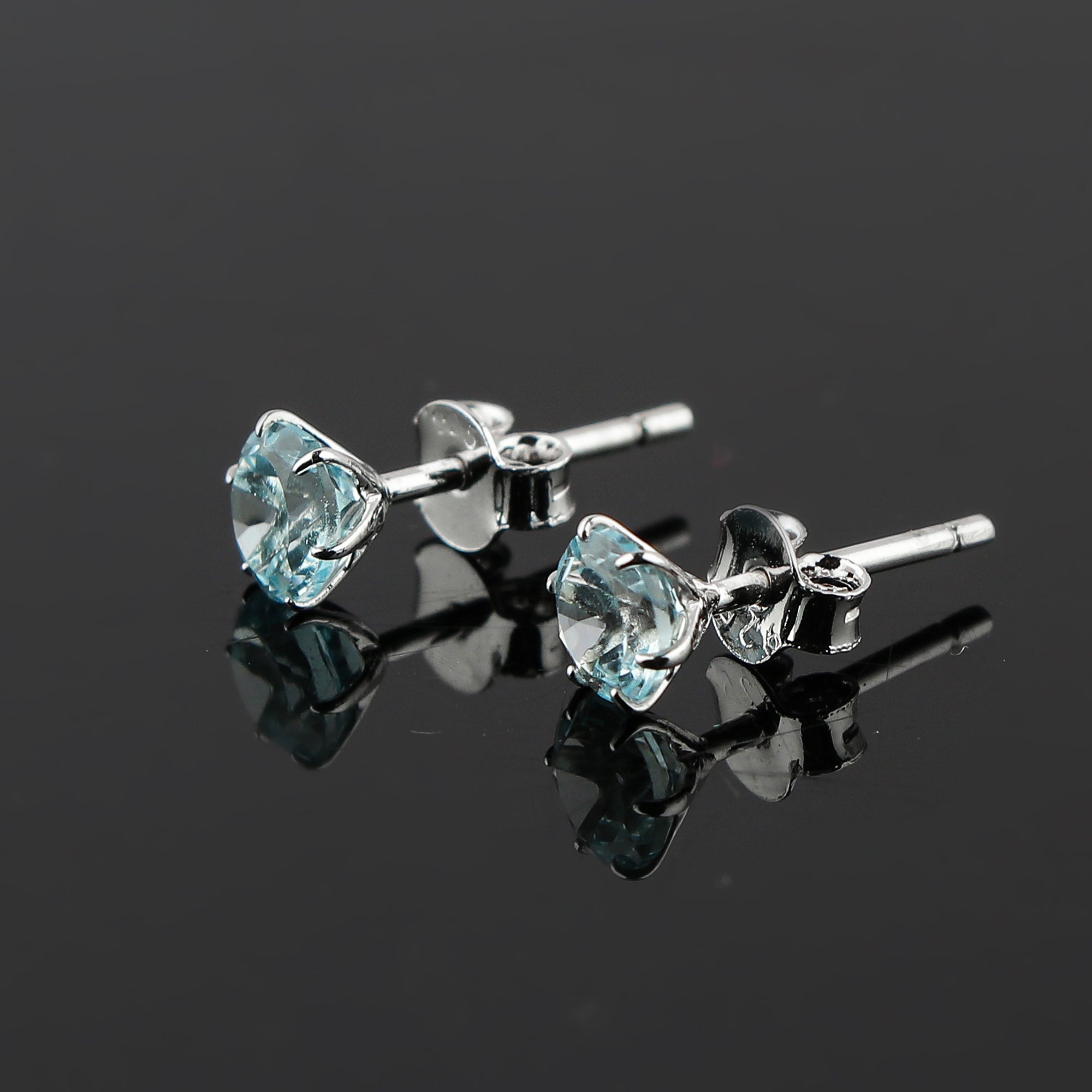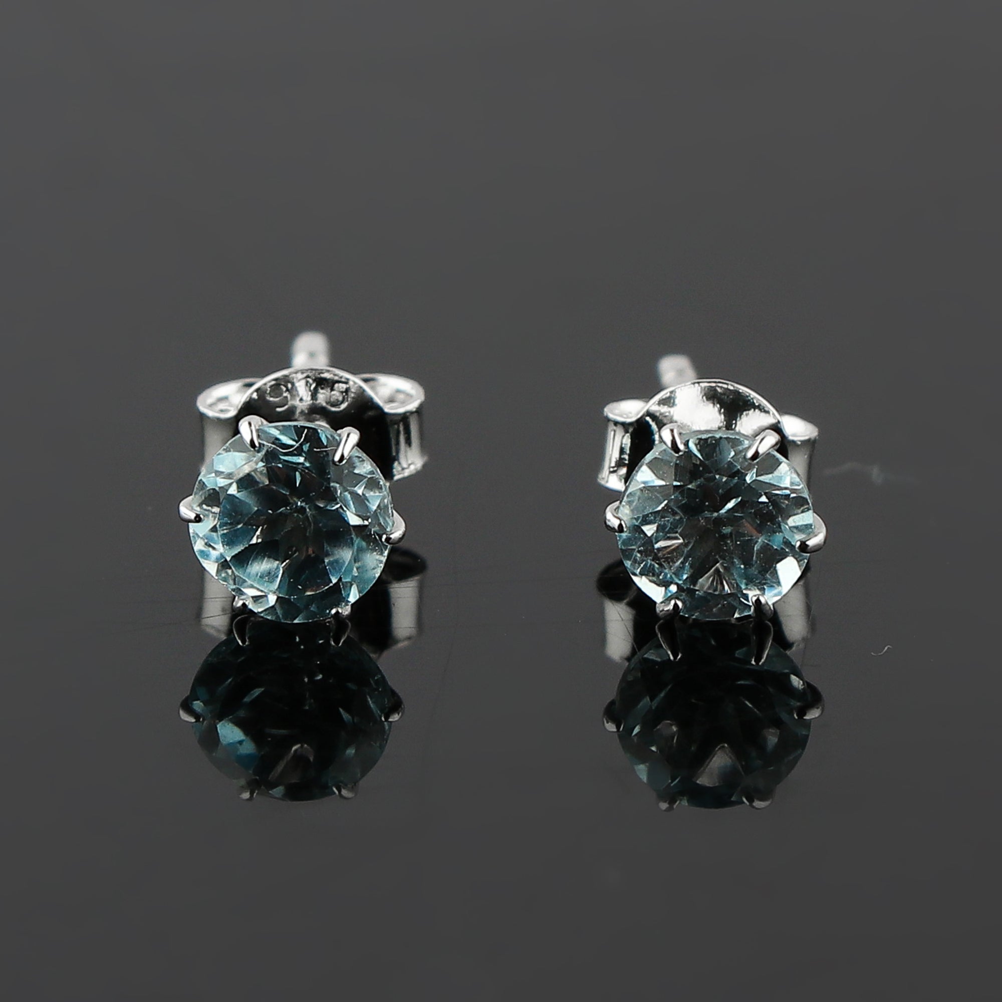 Natural Sky Blue Topaz Crystals Round Shape Stud Earring For Women, Chakra Energy Healing Gemstone, Real Crystal, Birthstone, Beautiful Women Simple Christmas Gift Jewelry