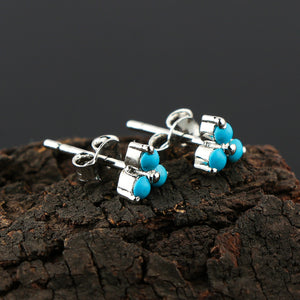 Natural TURQUOISE 3 STONE FLOWER Crystals Round Shape Stud Earring For Women, Blue Real Crystal Birthstone, Perfect for Gifting