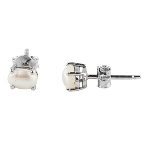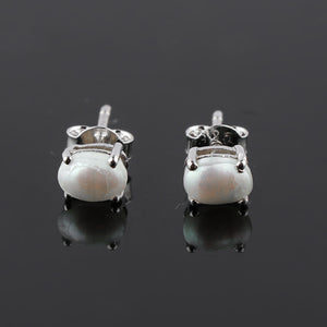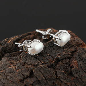 Natural White Pearl Oval Stud Earrings 925 Sterling Silver | Elegant Gemstone Jewelry